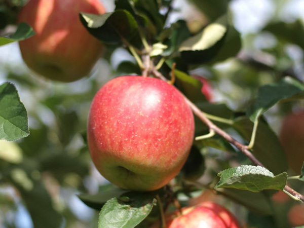 全体が赤く染まり、底が黄色く丸みを帯びているものが、おいしいリンゴの見分け方。