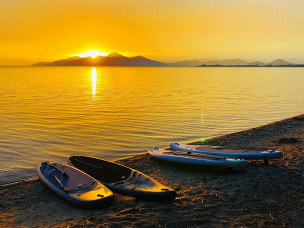 マイアミ浜から眺める神々しい朝日は必見。季節を問わずキャンパーを清々しい気分にさせる。その上、SUPやカヌーも楽しめる。