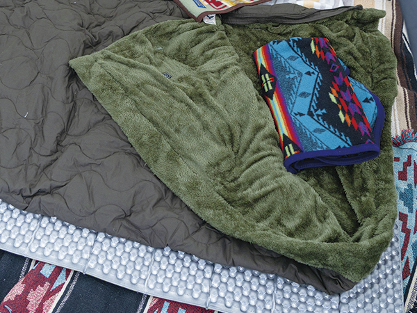 敷き毛布をホットカーペットがわりにするキャンパーは多く、テント内暖房の本命だ。