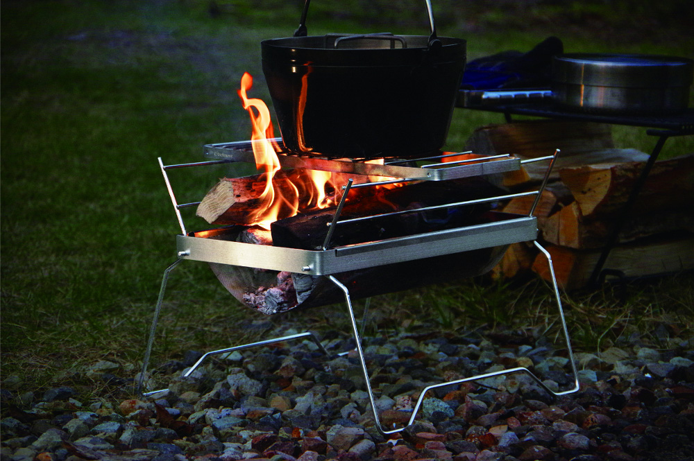 ファミリーサイズなのでそれなりに大きいが、その分、ダッチオーブンを使った料理など、用途は広がる。火床はメッシュで、無造作に薪を入れても着火しやすいうえ、オプションを使えば火床の下でピザを焼ける。