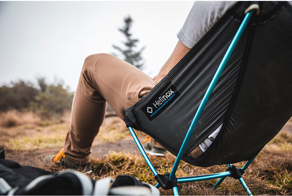 ヘリノックス「チェアゼロ」は、ペットボトル1本分に満たない超軽量で、コンパクトに収納可能。フレーム剛性もしっかりしており、座り心地もよい。