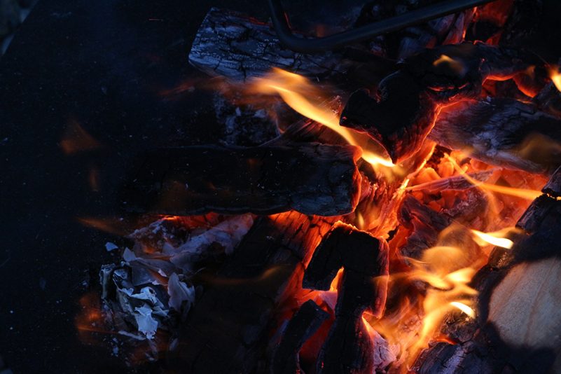 そのうち、余計なことを考えなくなる。考えようとしても入ってこない。「何もしないで火を見ていると落ち着く」と言われることがあるが、それは違う。火が落ち着いているときですら、次の変化を無意識に見ている。落ち着くのではなく、意識の範囲が一点に絞られる。