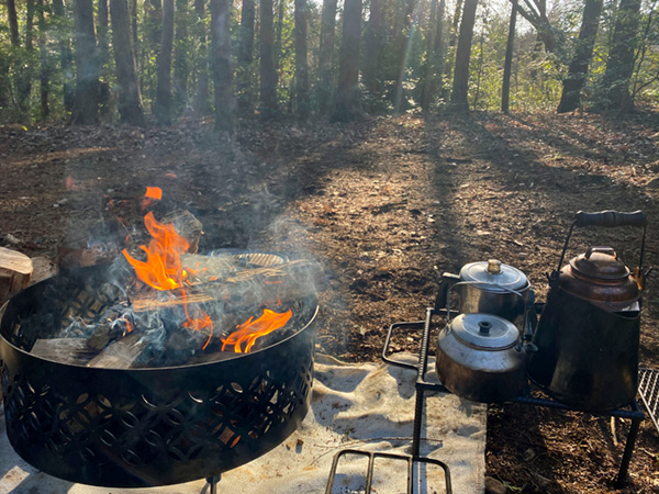 焚き火は薪の材質や組み方によって燃え方が変わり、それに応じて動き方も変わってくる。火が落ち着けば手を休めるが、放っておけるわけではない。常に少しずつ気を配り、微調整を続ける。その作業に自然と没頭しているうちに、気づけば時間が過ぎている。
