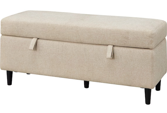 まず注目したいのが「ベンチ型収納」だ。ニトリやLOWYAなどから販売されているベンチタイプの収納家具は、座面を開けると内部にたっぷりとした収納スペースがあるのが特徴。