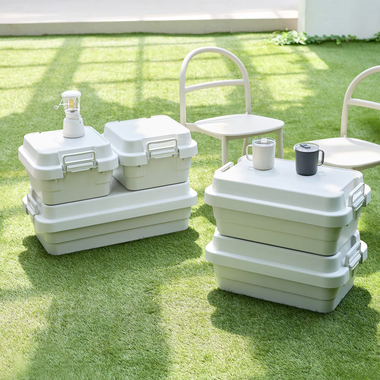 そしてもうひとつの問題が、「出し入れの面倒さ」だ。収納場所を確保できたとしても、物置やクローゼットの奥に積み上げてしまえば、使うたびに重いボックスをどかす必要がある。こうなると、せっかくのキャンプも「準備が面倒で腰が重い」ものになってしまう。