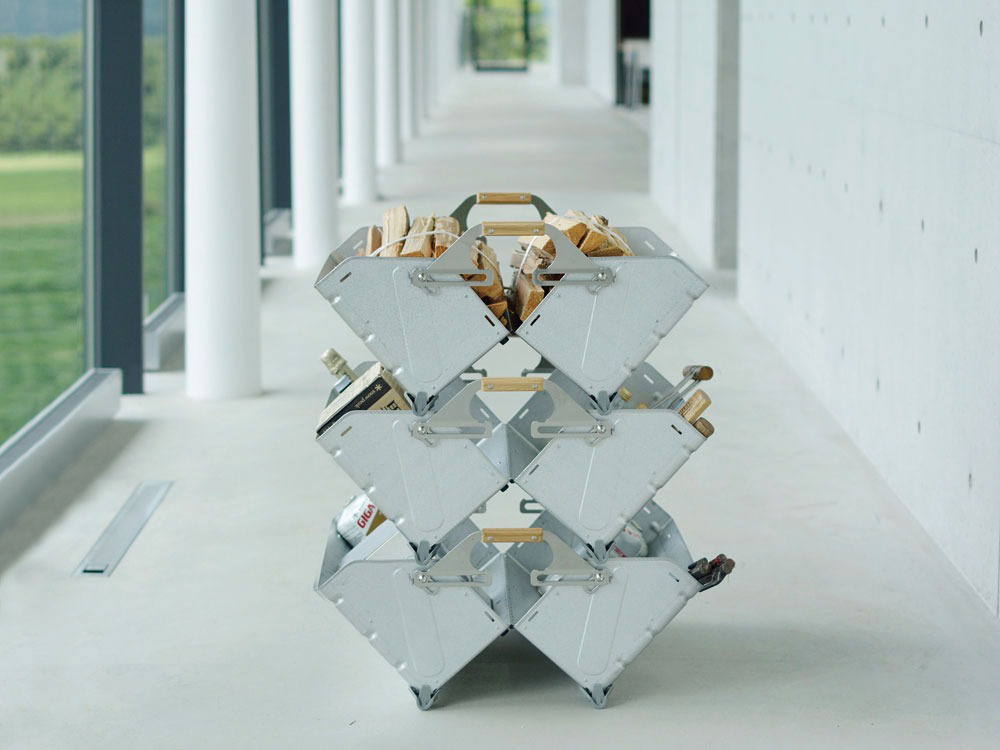 スノーピークの「シェルフコンテナ」は、収納ギアでありながら家具的存在感を持つ逸品だ。スチールの無骨さと天然木の組み合わせが美しく、収納時にはボックスとして、展開すれば棚として使えるという構造もユニークである。
