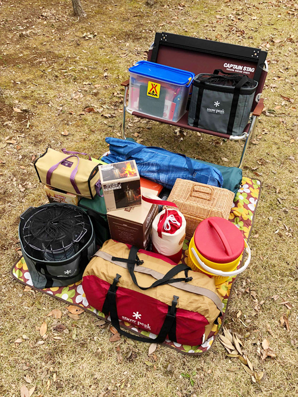 次に、リビングスペースの整備にはテーブルやチェア、ランタン類が必要になる。それらは「場づくり用セット」として分類しておくと、次に何を出すかが自然と決まってくる。