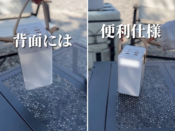 本体にはUSB Type-AとType-Cを合わせて6つのポートを搭載し、パススルー充電にも対応。バッテリー残量や電圧・電流は前面パネルで確認できる。さらに夜間や停電時には最大約144時間点灯する3段階調光のLEDライトも完備。
