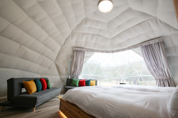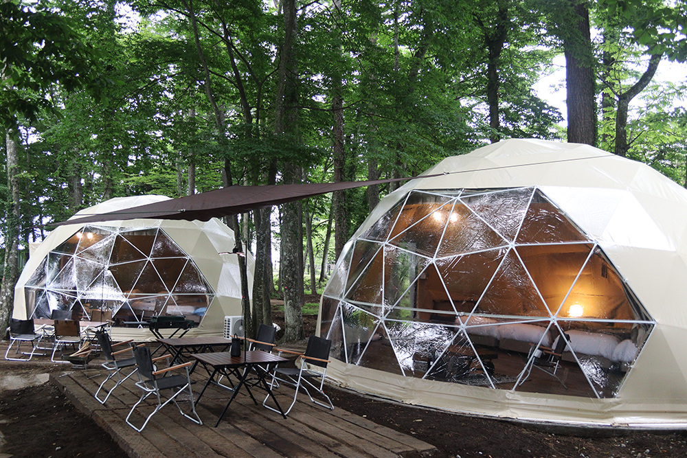 キャンプの雰囲気を味わいながらも、テーブルやベッド、さらには空調まで備わっている場合も多く、手ぶらで訪れても快適に過ごせるのが魅力だ。