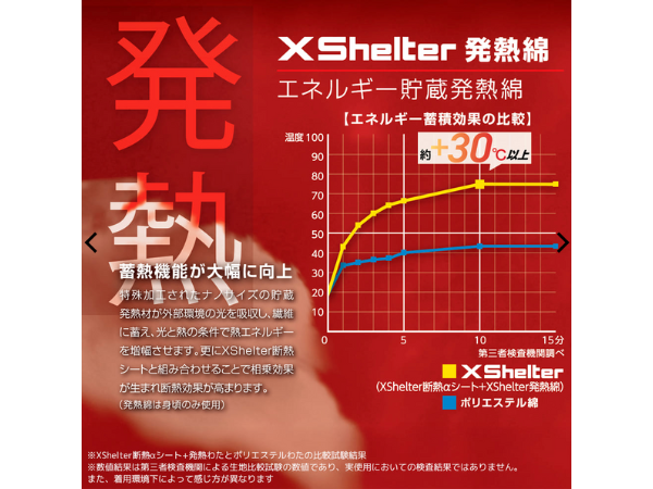 外からの冷気を遮断。さらに光を吸収し繊維に蓄え発熱する中わたを使用しているので、衣服内の熱を逃さない仕組み!焚き火から離れたあとも温かさが続くのが、寒い季節でも頼もしいポイントです。