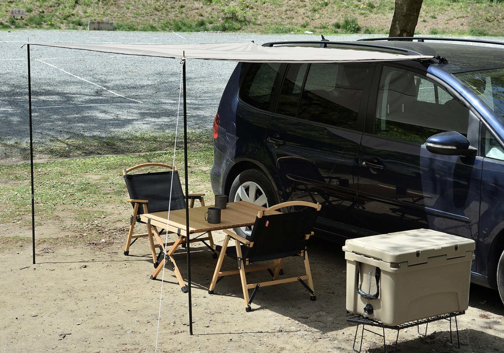 オープン式カーサイドタープは、設営が簡単で開放感があります。車中泊やデイキャンプを快適にしてくれる心強いアイテムです。