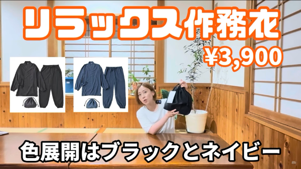 今回Nozomiさんはワークマンのラインナップから、今話題の「リラックス作務衣」と、機能性Tシャツ3つをピックアップ。いずれも手に取りやすい価格帯ながら、実用面は抜かりなしだ。