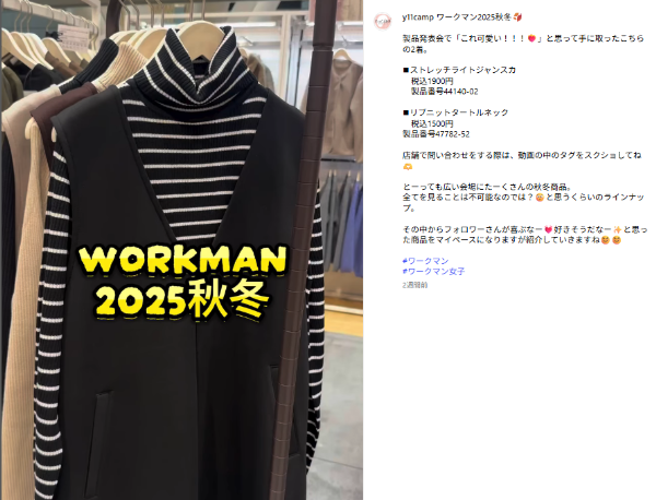 ゆみさんはワークマンの2025年秋冬発表会で見つけた、「可愛い」レディース2着を紹介。