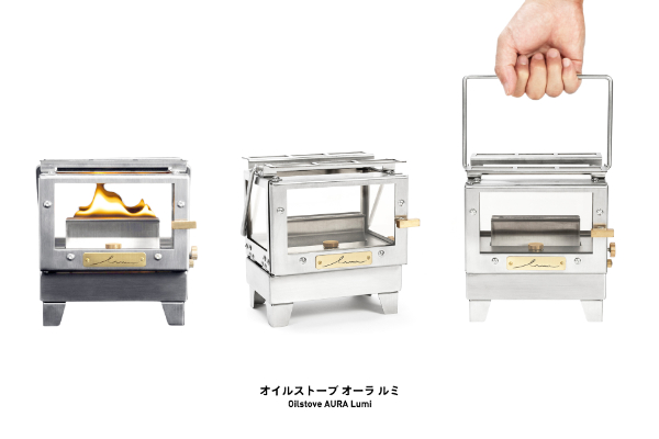 人気薪ストーブ「オーラ」をモチーフにした小型オイルストーブ。炎の鑑賞性と照明・保温の“ほどよさ”を重視し、屋外はもちろん自宅のデッキやガレージでも扱いやすい出力を狙った製品だ。