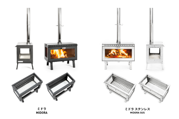 「アウトドア薪ストーブ ミドラ」「アウトドア薪ストーブ ミドラ ステンレス」「アウトドア薪ストーブ マイクロ2」「オイルストーブ オーラ ルミ」も順次予約を開始する。