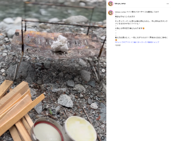 キャッチ&ポップな新世代のキャンプスタイルをSNSで発信しているタクヤCampさんがInstagramを更新。焚き火などに便利な魔法のアイテムを紹介した。