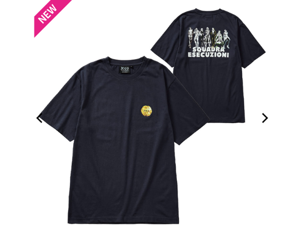 チームのリーダー〈ブローノ・ブチャラティ〉がデザインされたモデル。落ち着いたトーンがどんな服にもなじみやすく、「主張しすぎない推し活T」として幅広い層に人気が出そう。