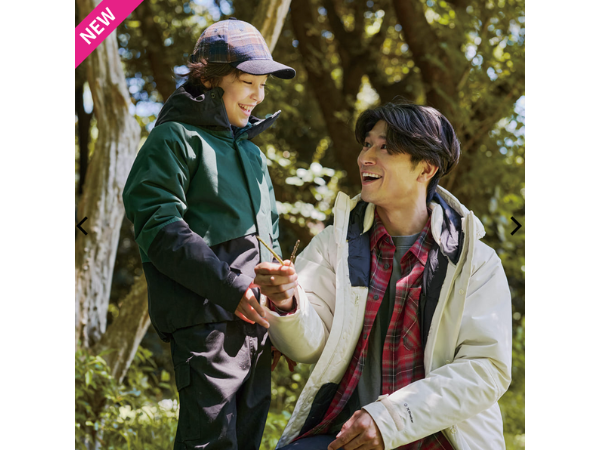 「防水×断熱×発熱」のスペックを搭載したお揃いのアウターなら、寒さも雨も気にせず家族で秋冬キャンプを楽しめます。