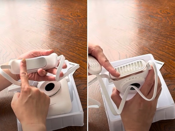 送風と冷却は併用可能で、表示部にはバッテリー残量や冷却プレート温度が表示される。使用中に冷却ボタンをダブルタップすると残量表示に切り替わる仕様である。