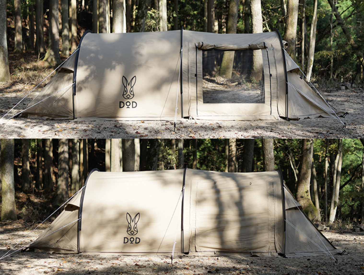 DODのカマボコテントソロTCは、ポリコットン素材で暖かく、風に強いトンネル型テント。ベンチレーションが両サイドにあるため、換気が十分にできて結露対策もバッチリです。リビングスペースが広く、のんびり快適におこもりキャンプができます。スカート付きで冷気が入ってくるのを防いでくれるため、暖かく過ごますよ!