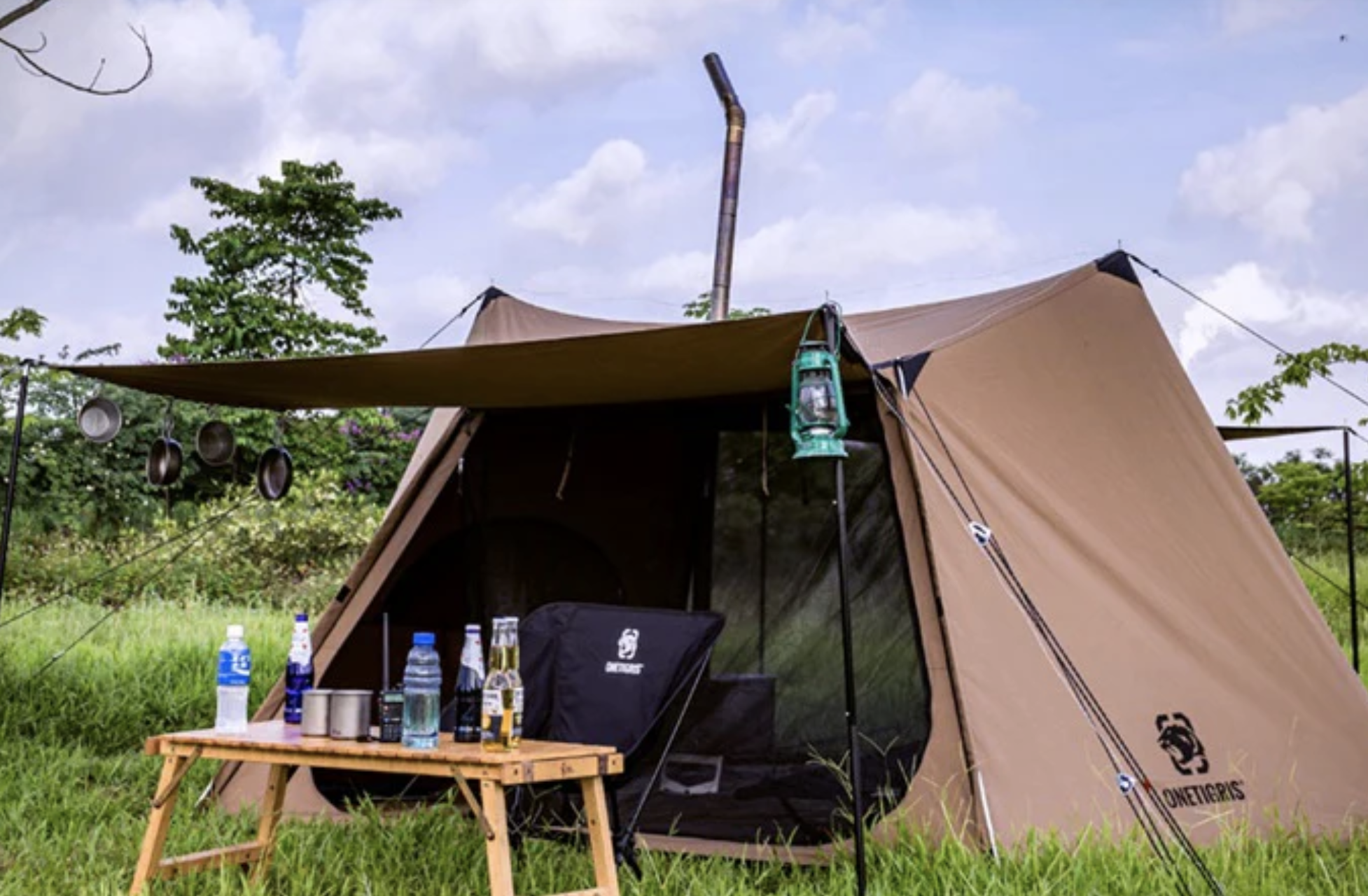 ワンティグリスのSOLO HOMESTEADは、煙突穴があり薪ストーブに対応しています。メッシュ窓もあるので、通気性もバッチリ。ポリコットン素材で暖かく、設営が簡単なのでソロキャンパーさんからの評価が高いテントです。