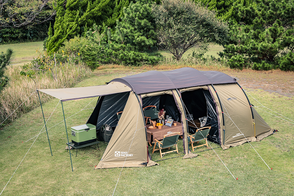 ファミリーキャンプやグループでの長期滞在、あるいはグランピング志向のキャンプスタイルに向いている。一度設営してしまえば、快適さでは他の追随を許さない。