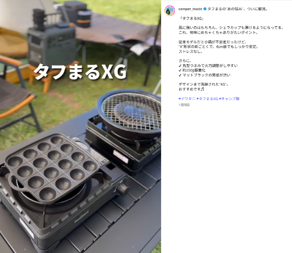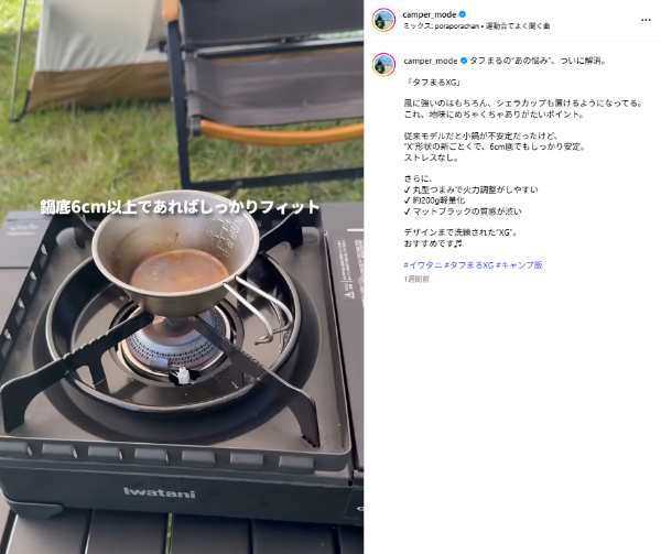 キャンプライフクリエイターとして活動するのすけさんがInstagramを更新。アウトドアで人気のあるイワタニのカセットコンロ「タフまる」の最新版を紹介した。