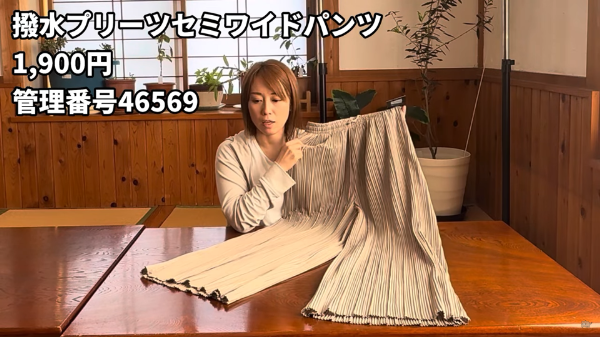 2)撥水プリーツセミワイドパンツ(1,900円)