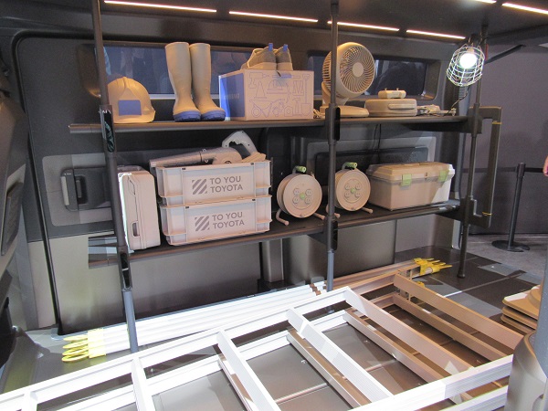 今回の展示車は右サイドにラックを設置した、職人車仕様。そのままキャンプ仕様に流用できそうだが、あくまでもコンセプトモデルである。