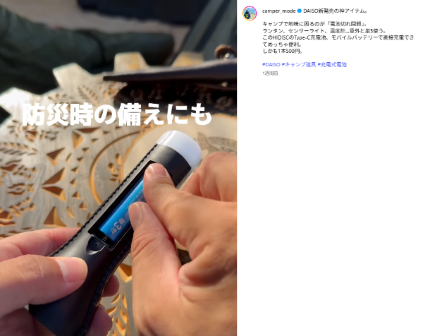 【ダイソー】キャンプの電池切れ問題、550円のコスパ最強新発想ギアでほぼ解決!