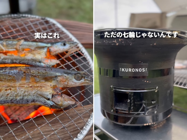 「最高峰の七輪でサンマ焼いたら、、、めっちゃ美味すぎて飛んだ」とのすけさんが絶賛したのはKURONOS「黒七輪」。