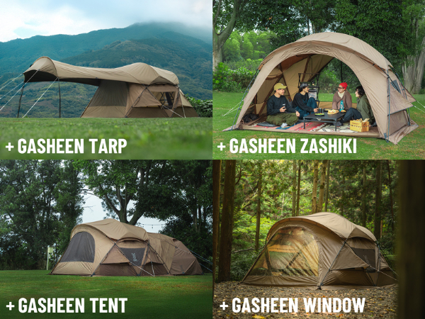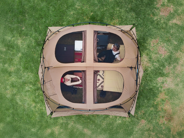 さらに専用オプションを連結することで、2ルーム化やお座敷化など、多様なキャンプスタイルにアレンジできる構造となっている。