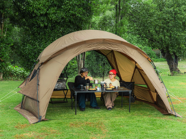 ビーズ株式会社が展開するアウトドアブランド「DOD」は、様々なキャンプスタイルに合わせて拡張できるドームシェルター「ガシーンドーム」と専用オプション4製品を、2025年11月21日より発売した。
