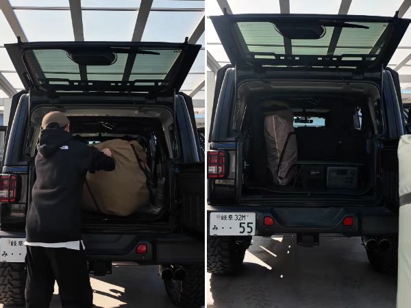 MASAさんは「Wranglerで積載テトリス」とコメントして、エアテントを車に積み込む方法を紹介。