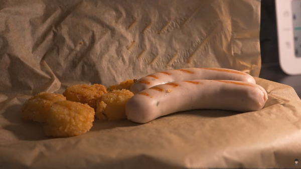 日没前に陸別に到着。道の駅に車をとめ、晩は道内の味を車内で楽しむ。「ホタテフライ」は「味は美味しい」、大好物の「ヴァイスヴルスト」は「油っぽくないしプルンとしてる」と笑顔。