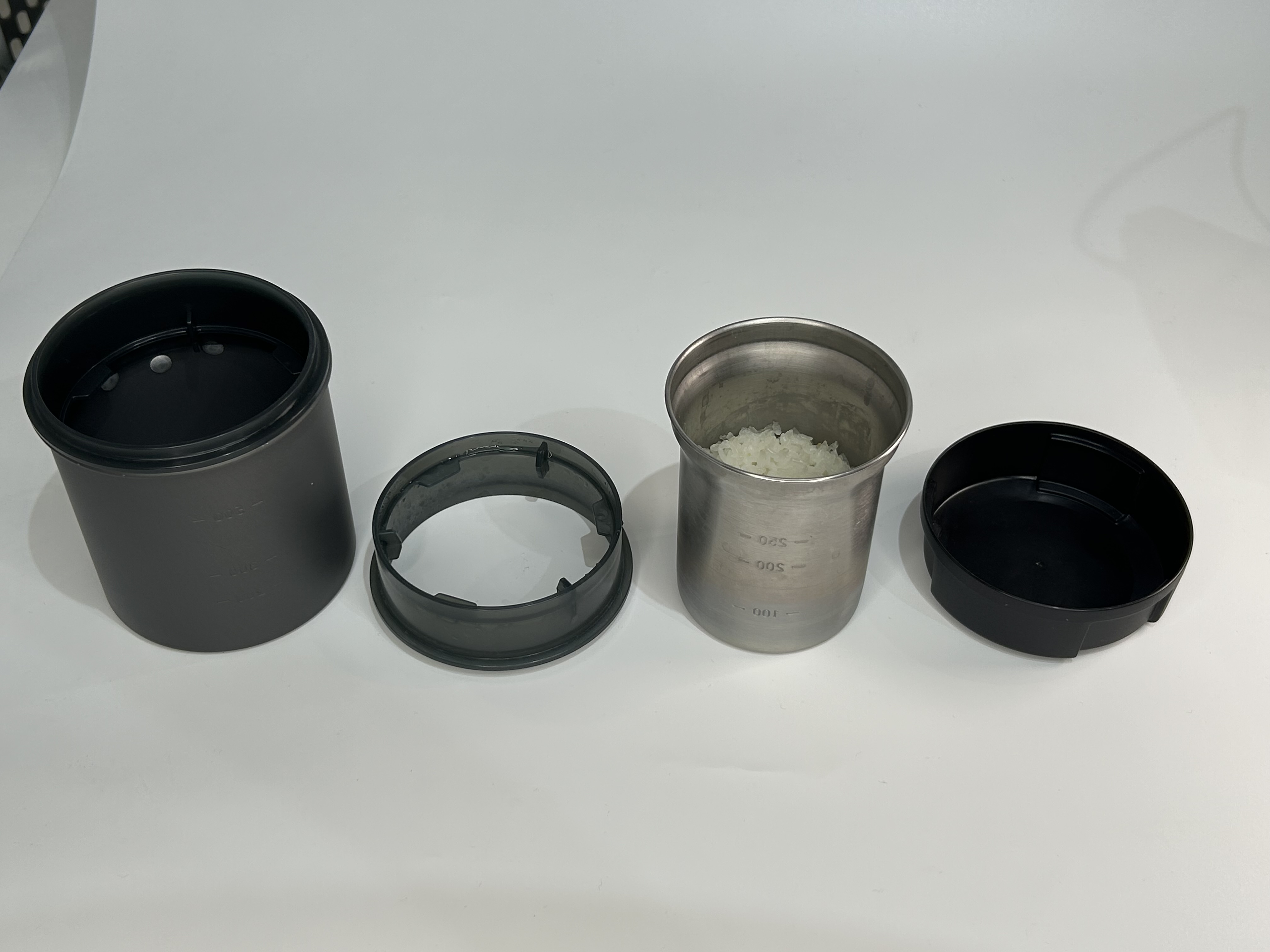 - 内側マグ350に米と水を入れる(0.5合=100ml、0.8合=160ml)