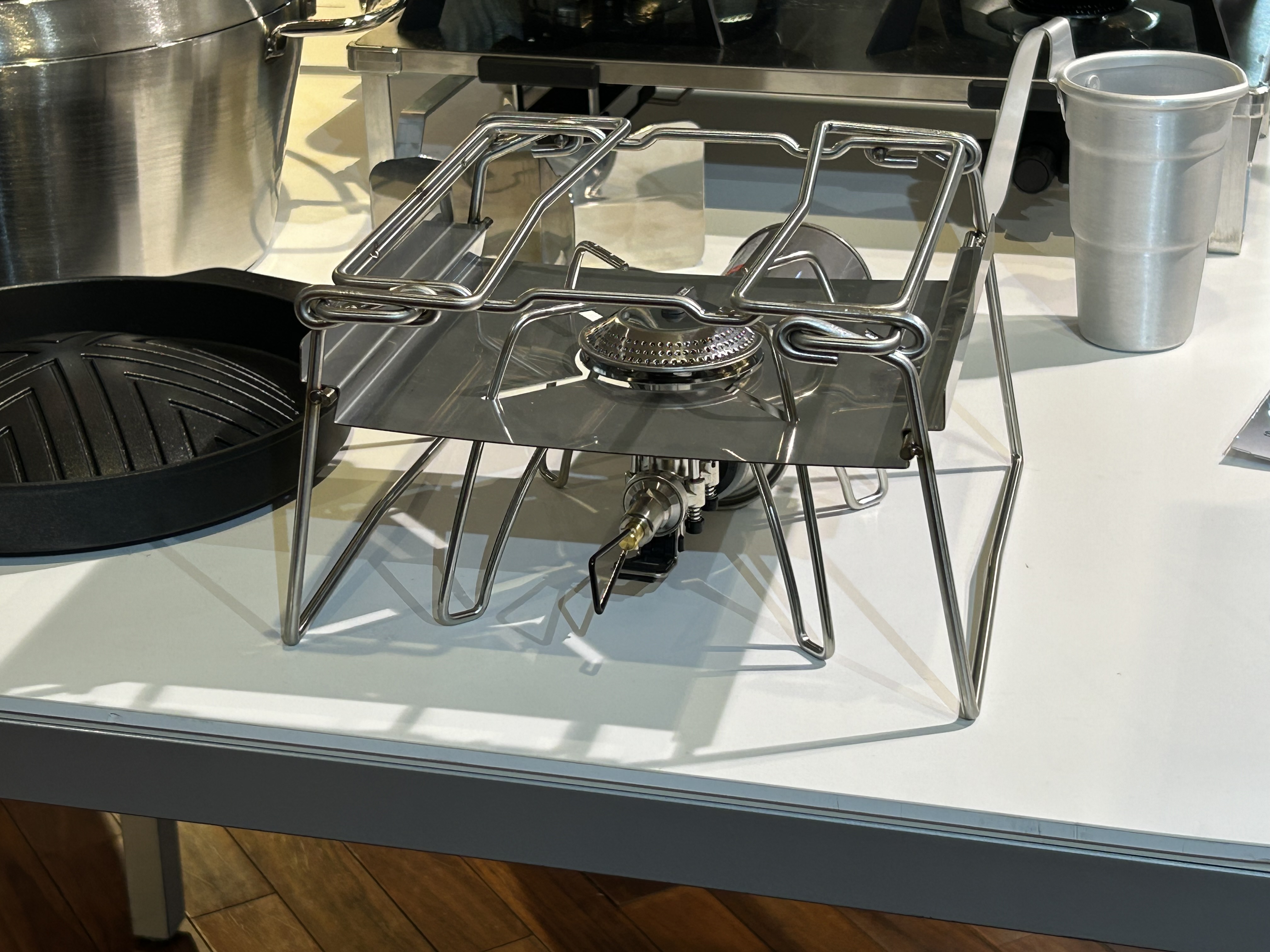 SOTOのステンレスダッチオーブン(結構な重さ)を乗せても、グラつきゼロで安心感バッチリでした◯。