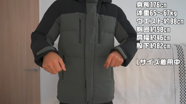防風が効いて、過去最高クラスに暖かいというワークマンの「XShelter断熱αプレミアムギガパフダウンコート」。北海道で車中泊・アウトドア発信を行うコスケさんはLサイズのダークグリーンを着用(Mサイズのブラックも所有)し、着心地や防寒性を確認した。